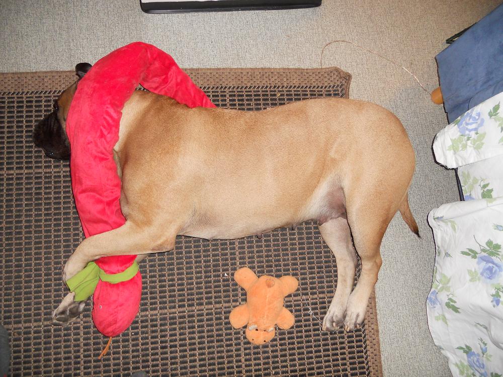Ja sitä perus bullmastiffi ilmetta. Aikas identtinen paukun parin vuoden takaiseen asentoon sohvalla ja tarkennetaan et Miian sohvalla. =) Täytyy toivoa, että pappa jaksaisi vielä matkustaa Nousiaisiin asti, kun Miian luona lomailu on Paukusta aina ollut super huippua!
